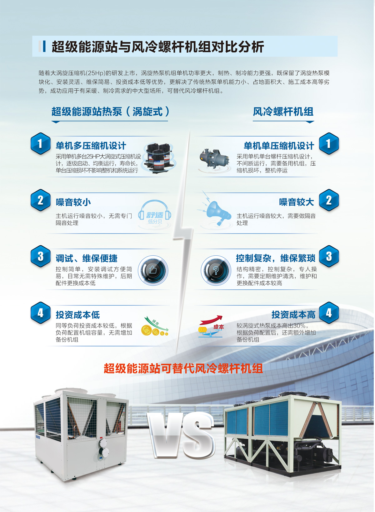 產品可應用于各類新建及改造項目,完美替代傳統燃煤鍋爐、空調及熱水設備,如北方采暖,酒店、學校、醫院等場所采暖、熱水、制冷等領域